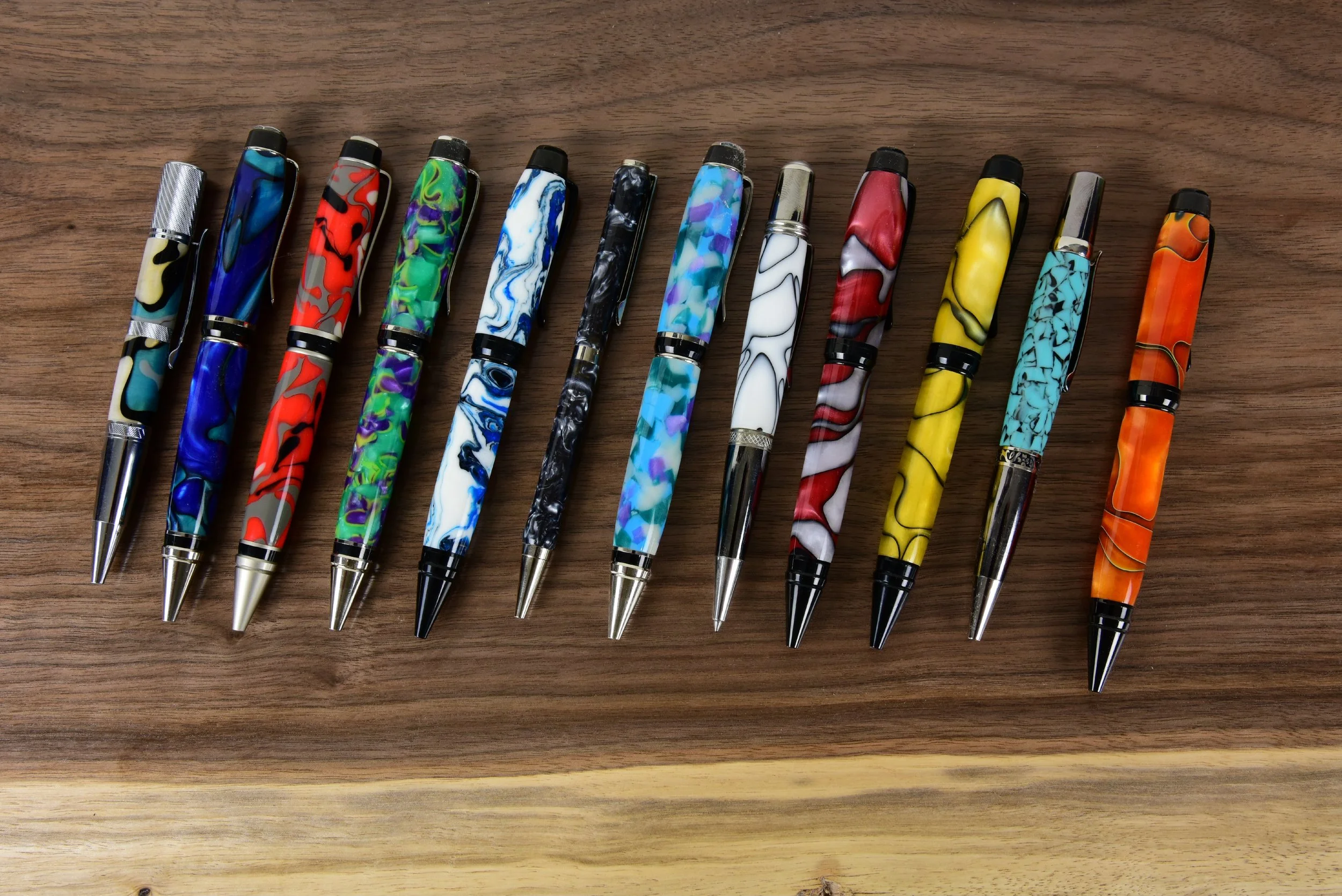 We do our best to source only top-quality pen parts to ensure your pen will last a long time. Each pen is unique and there will never be another just like it. Every piece of wood or acrylic used to make our pens is unique. While we can order the same thing again the wood grain or the tint or swirl patterns in the acrylic will probably never be the same again.